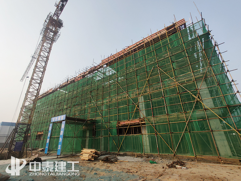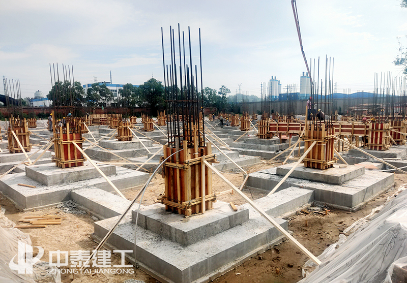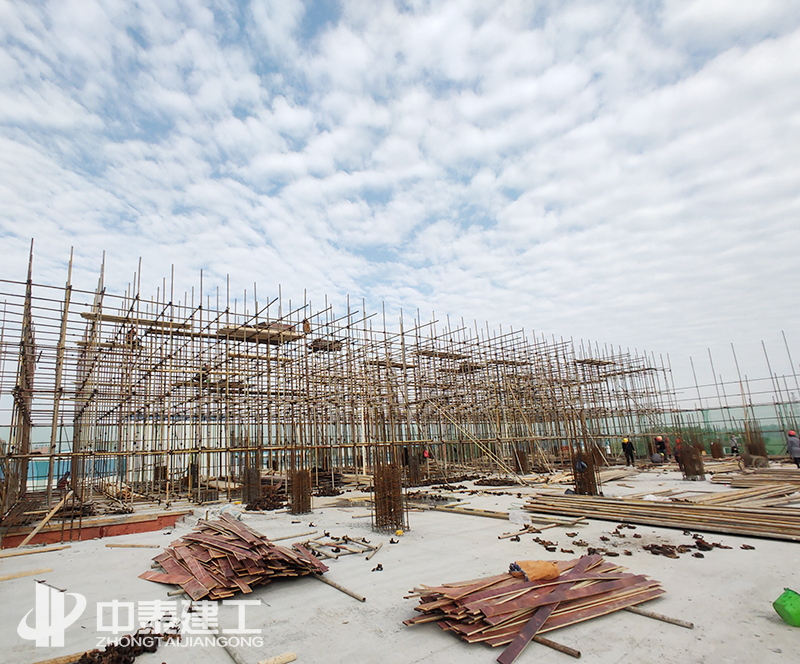 项目于2020年7月25日开工,经过前期的不懈努力,在烈日炎炎的环境下,顺利完成场地平整、土方开挖、基础施工。2020年9、10月间,面对首层层高7.5米和二层层高超过8米的不利条件下,立博app严格按照经专家论证通过的高大支模方案进行模板施工,认真检查支撑体系。确保达到施工的安全情况下,顺利完成模架支撑体系搭设。于2020年11月16日顺利完成结构封顶。